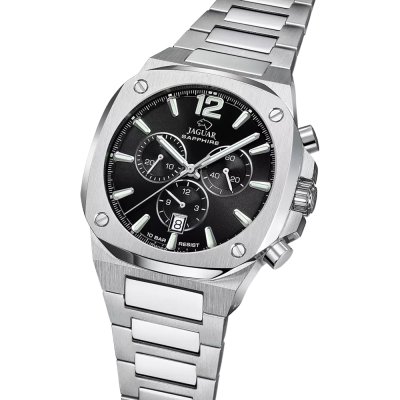Dit Jaguar horloge heeft een kast gemaakt van Staal zilver met een diameter van 42.9 mm en is voorzien van een Staal zilver band. In de kast bevindt zich een Ronda kwaliteitsuurwerk en is afgewerkt met Saffierglas.