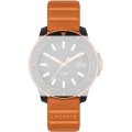 Dit Lacoste horlogebandje is gemaakt van siliconen en wordt aan het horloge bevestigd door middel van bandpennen. De band heeft een breedte van 20 mm en wordt gesloten door middel van een gesp. De band heeft een rechte aanzet wat betekent dat deze band geschikt is voor alle Lacoste horloges met een rechte aanzet.