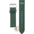 Dit Lacoste horlogebandje is gemaakt van textiel op leer en wordt aan het horloge bevestigd door middel van bandpennen. De band heeft een breedte van 21 mm en wordt gesloten door middel van een gesp. De band heeft een rechte aanzet wat betekent dat deze band geschikt is voor alle Lacoste horloges met een rechte aanzet.