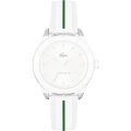 Dit Lacoste horlogebandje is gemaakt van siliconen en wordt aan het horloge bevestigd door middel van bandpennen. De band heeft een breedte van 17 mm en wordt gesloten door middel van een gesp. De band heeft een rechte aanzet wat betekent dat deze band geschikt is voor alle Lacoste horloges met een rechte aanzet.
