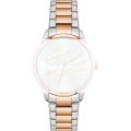 Dit Lacoste horlogebandje is gemaakt van roestvrij staal en wordt aan het horloge bevestigd door middel van bandpennen. De band heeft een breedte van 18 mm en wordt gesloten door middel van een vouwsluiting met drukknoppen. De band heeft geen rechte aanzet wat betekent dat deze band alleen geschikt is voor de horloges die hieronder worden vermeld.