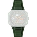 Dit Lacoste horlogebandje is gemaakt van resin en wordt aan het horloge bevestigd door middel van stalen pennen. De band heeft een breedte van 24 mm en wordt gesloten door middel van een gesp. De band heeft geen rechte aanzet wat betekent dat deze band alleen geschikt is voor de horloges die hieronder worden vermeld.
