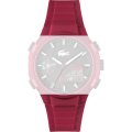 Dit Lacoste horlogebandje is gemaakt van siliconen en wordt aan het horloge bevestigd door middel van stalen pennen. De band heeft een breedte van 25 mm en wordt gesloten door middel van een gesp. De band heeft geen rechte aanzet wat betekent dat deze band alleen geschikt is voor de horloges die hieronder worden vermeld.
