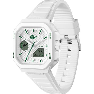 Dit Lacoste horloge heeft een kast gemaakt van Resin met een diameter van 44 mm en is voorzien van een Rubber band.