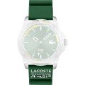 Dit Lacoste horlogebandje is gemaakt van siliconen en wordt aan het horloge bevestigd door middel van bandpennen. De band heeft een breedte van 24 mm en wordt gesloten door middel van een gesp. De band heeft een rechte aanzet wat betekent dat deze band geschikt is voor alle Lacoste horloges met een rechte aanzet.
