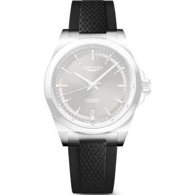 Dit Longines horlogebandje is gemaakt van rubber en wordt aan het horloge bevestigd door middel van bandpennen. De band heeft een breedte van 19 mm. De band heeft geen rechte aanzet wat betekent dat deze band alleen geschikt is voor de horloges die hieronder worden vermeld.