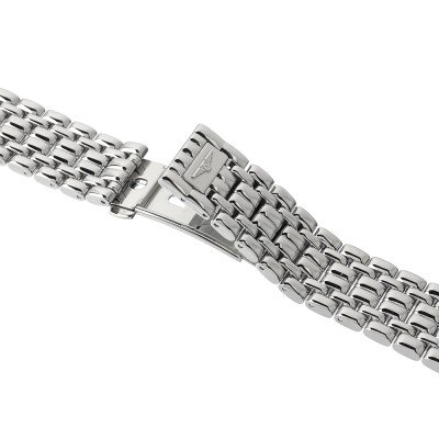 Dit Longines horlogebandje is gemaakt van roestvrij staal en wordt aan het horloge bevestigd door middel van bandpennen. De band heeft een breedte van 18 mm en wordt gesloten door middel van een vouwsluiting met drukknoppen. De band heeft geen rechte aanzet wat betekent dat deze band alleen geschikt is voor de horloges die hieronder worden vermeld.