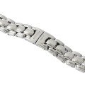 Dit Longines horlogebandje is gemaakt van roestvrij staal en wordt aan het horloge bevestigd door middel van bandpennen. De band heeft een breedte van 12 mm en wordt gesloten door middel van een onzichtbare vlindersluiting. De band heeft geen rechte aanzet wat betekent dat deze band alleen geschikt is voor de horloges die hieronder worden vermeld.