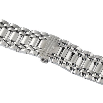 Dit Longines horlogebandje is gemaakt van roestvrij staal en wordt aan het horloge bevestigd door middel van bandpennen. De band heeft een breedte van 21 mm en wordt gesloten door middel van een vlindersluiting met drukknoppen. De band heeft geen rechte aanzet wat betekent dat deze band alleen geschikt is voor de horloges die hieronder worden vermeld.
