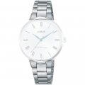 Dit Lorus horlogebandje is gemaakt van roestvrij staal en wordt aan het horloge bevestigd door middel van stalen pennen. De band heeft een breedte van 14 mm en wordt gesloten door middel van een vouwsluiting met veiligheidsklep. De band heeft geen rechte aanzet wat betekent dat deze band alleen geschikt is voor de horloges die hieronder worden vermeld.