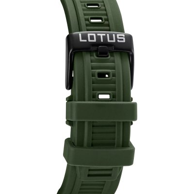 Dit Lotus horloge heeft een kast gemaakt van Staal zilver met een diameter van 46 mm en is voorzien van een Rubber band. In de kast bevindt zich een Miyota kwaliteitsuurwerk en is afgewerkt met Mineraalglas.
