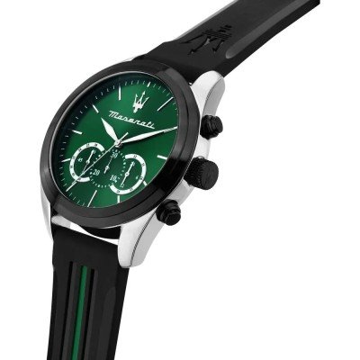 Dit Maserati horloge heeft een kast gemaakt van Staal zilver met een diameter van 45 mm en is voorzien van een Rubber band. In de kast bevindt zich een Miyota kwaliteitsuurwerk en is afgewerkt met Mineraalglas.