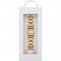 Dit Michael Kors horlogebandje is gemaakt van roestvrij staal en wordt aan het horloge bevestigd door middel van schuif. De band heeft een breedte van 22 mm en wordt gesloten door middel van een vouwsluiting met drukknoppen. De band heeft geen rechte aanzet wat betekent dat deze band alleen geschikt is voor de horloges die hieronder worden vermeld.