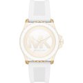 Dit Michael Kors horlogebandje is gemaakt van siliconen en wordt aan het horloge bevestigd door middel van bandpennen. De band heeft een breedte van 22 mm en wordt gesloten door middel van een gesp. De band heeft een rechte aanzet wat betekent dat deze band geschikt is voor alle Michael Kors horloges met een rechte aanzet.