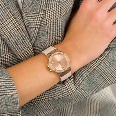 Dit Michael Kors horloge heeft een kast gemaakt van Staal zilver met een diameter van 37 mm en is voorzien van een Rubber band. In de kast bevindt zich een Miyota kwaliteitsuurwerk en is afgewerkt met Mineraalglas.