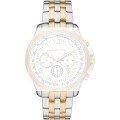 Dit Michael Kors horlogebandje is gemaakt van roestvrij staal en wordt aan het horloge bevestigd door middel van bandpennen. De band heeft een breedte van 22 mm en wordt gesloten door middel van een vouwsluiting met drukknoppen. De band heeft geen rechte aanzet wat betekent dat deze band alleen geschikt is voor de horloges die hieronder worden vermeld.