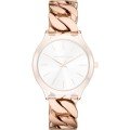 Dit Michael Kors horlogebandje is gemaakt van roestvrij staal en wordt aan het horloge bevestigd door middel van bandpennen. De band heeft een breedte van 18 mm en wordt gesloten door middel van een vouwsluiting met drukknoppen. De band heeft geen rechte aanzet wat betekent dat deze band alleen geschikt is voor de horloges die hieronder worden vermeld.