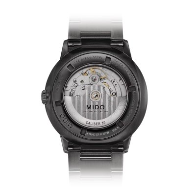 De Mido Commander horlogeserie bestaat al sinds 1959. In de loop der jaren zijn de horloges vernieuwd en natuurlijk voorzien van de nieuwste technische innovaties. Het Commander Gradient horloge heeft een speciale wijzerplaat, gemaakt van transparant acryl, met een rokerig kleurverloop dat naar de randen toe steeds ondoorzichtiger wordt. Dit betekent dat het binnenwerk van het horloge zichtbaar is door de wijzerplaat - hoewel gehuld in een mysterieus kleureffect - terwijl de datum op 3 uur en de stokvormige wijzers perfect opvallen. Het horloge wordt aangedreven door een kaliber 80 automatisch uurwerk met een verbluffende gangreserve van 80 uur! Dit uurwerk, met prachtig 'geguillocheerde' rotor, is niet alleen zichtbaar vanaf de voorkant, maar ook vanaf de achterkant van het horloge.