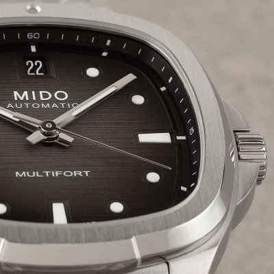 De Multifort TV 35 is de damesversie van de bekende Mido Multifort-collectie met de kenmerkende old school TV-vormige kast. Dankzij het Calibre 72 automatische uurwerk met 72 uur gangreserve kon de dikte van het horloge worden beperkt tot iets meer dan 9 mm, waardoor het een zeer aangenaam horloge is om te dragen. De wijzerplaat biedt een mix van de kenmerkende designelementen van de collectie: afgeronde hoeken, verzonken lichtgevende indexen, stokvormige wijzers en een subtiele kroonbeschermer.