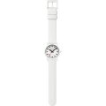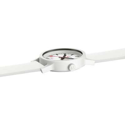 Dit Mondaine horloge heeft een kast gemaakt van Plastic/kunsthars met een diameter van 32 mm en is voorzien van een Rubber band. In de kast bevindt zich een Ronda kwaliteitsuurwerk en is afgewerkt met Gehard mineraalglasglas.