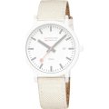 Dit Mondaine horlogebandje is gemaakt van gerecycled textiel met kurk en wordt aan het horloge bevestigd door middel van quick release bandpennen. De band heeft een breedte van 20 mm en wordt gesloten door middel van een gesp. De band heeft een rechte aanzet wat betekent dat deze band geschikt is voor alle Mondaine horloges met een rechte aanzet.