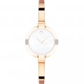 Dit Movado horlogebandje is gemaakt van roestvrij staal en wordt aan het horloge bevestigd door middel van stalen pennen. De band heeft een breedte van 5 mm en wordt gesloten door middel van een sieraadsluiting. De band heeft geen rechte aanzet wat betekent dat deze band alleen geschikt is voor de horloges die hieronder worden vermeld.