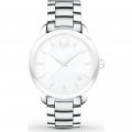 Dit Movado horlogebandje is gemaakt van roestvrij staal en wordt aan het horloge bevestigd door middel van bandpennen. De band heeft een breedte van 18 mm en wordt gesloten door middel van een vouwsluiting met drukknoppen. De band heeft geen rechte aanzet wat betekent dat deze band alleen geschikt is voor de horloges die hieronder worden vermeld.