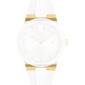 Dit Movado horlogebandje is gemaakt van siliconen en wordt aan het horloge bevestigd door middel van schroeven. De band heeft een breedte van 22 mm en wordt gesloten door middel van een gesp. De band heeft geen rechte aanzet wat betekent dat deze band alleen geschikt is voor de horloges die hieronder worden vermeld.