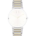 Dit Movado horlogebandje is gemaakt van roestvrij staal en wordt aan het horloge bevestigd door middel van schroeven. De band heeft een breedte van 20 mm en wordt gesloten door middel van een vlindersluiting met drukknoppen. De band heeft geen rechte aanzet wat betekent dat deze band alleen geschikt is voor de horloges die hieronder worden vermeld.