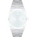 Dit Movado horlogebandje is gemaakt van roestvrij staal en wordt aan het horloge bevestigd door middel van schroeven. De band heeft een breedte van 22.5 mm en wordt gesloten door middel van een onzichtbare vlindersluiting. De band heeft geen rechte aanzet wat betekent dat deze band alleen geschikt is voor de horloges die hieronder worden vermeld.