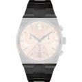 Dit Movado horlogebandje is gemaakt van roestvrij staal en wordt aan het horloge bevestigd door middel van schroeven. De band heeft een breedte van 26 mm en wordt gesloten door middel van een vlindersluiting met drukknoppen. De band heeft geen rechte aanzet wat betekent dat deze band alleen geschikt is voor de horloges die hieronder worden vermeld.