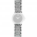 Dit Movado horlogebandje is gemaakt van roestvrij staal en wordt aan het horloge bevestigd door middel van stalen pennen. De band heeft een breedte van 12 mm en wordt gesloten door middel van een vouwsluiting. De band heeft geen rechte aanzet wat betekent dat deze band alleen geschikt is voor de horloges die hieronder worden vermeld.