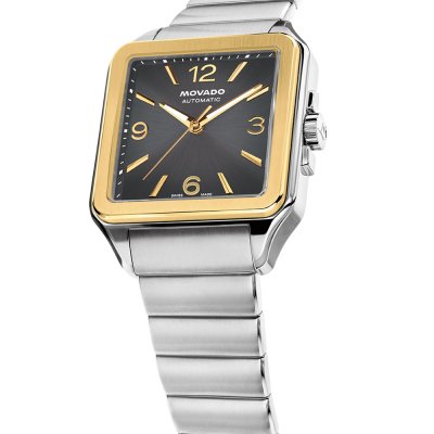 De Movado Heritage collectie put uit de rijke geschiedenis van het merk en brengt vintage horloges terug naar vandaag. De geometrische elegantie van Art Deco wordt weerspiegeld in de 'Heritage 1917' horloges. Dit horloge is een herinterpretatie van de eerste vierkante Movado horloges uit 1917 en heeft een gevormde kast met duidelijk gedefinieerde lijnen met een architectonische uitstraling. Recente updates van het origineel zijn een nieuw ontworpen unilink-band (of vintage-geïnspireerde Italiaanse gelooid lederen band) en een sunburst wijzerplaat, met subtiele tonale verschuivingen, die aan een Deco skyline doen denken. Het Zwitserse Sellita SW200 automatische uurwerk, met aangepaste Deco-design rotor, is voorzien van soepele, 'vegende' wijzers en is zichtbaar via het saffierglas kastdeksel.