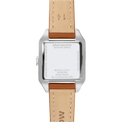 De Movado Heritage collectie put uit de rijke geschiedenis van het merk en brengt vintage horloges terug naar vandaag. De geometrische elegantie van Art Deco wordt weerspiegeld in de 'Heritage 1917' horloges. Dit horloge is een herinterpretatie van de eerste vierkante Movado horloges uit 1917 en heeft een gevormde kast met duidelijk gedefinieerde lijnen met een architectonische uitstraling. Recente updates van het origineel zijn een nieuw ontworpen unilink-band (of vintage-geïnspireerde Italiaanse gelooid lederen band) en een sunburst wijzerplaat, met subtiele tonale verschuivingen, die aan een Deco skyline doen denken. Het Zwitserse Sellita SW200 automatische uurwerk, met aangepaste Deco-design rotor, is voorzien van soepele, 'vegende' wijzers en is zichtbaar via het saffierglas kastdeksel.