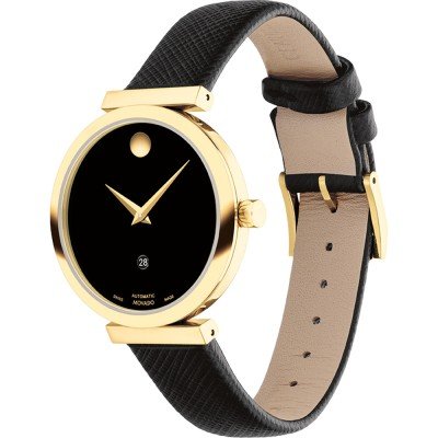 Dit Movado horloge heeft een kast gemaakt van Staal zilver met een diameter van 32 mm en is voorzien van een leer band. In de kast bevindt zich een Sellita kwaliteitsuurwerk en is afgewerkt met Saffierglas.