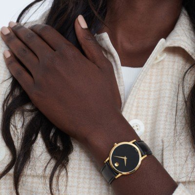 Dit Movado horloge heeft een kast gemaakt van Staal zilver met een diameter van 33 mm en is voorzien van een leer band. In de kast bevindt zich een ETA kwaliteitsuurwerk en is afgewerkt met Saffierglas.