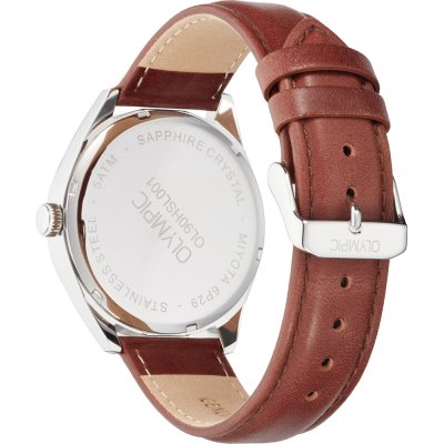 Dit Olympic horloge heeft een kast gemaakt van Staal zilver met een diameter van 40 mm en is voorzien van een leer band. In de kast bevindt zich een Miyota kwaliteitsuurwerk en is afgewerkt met Saffierglas.
