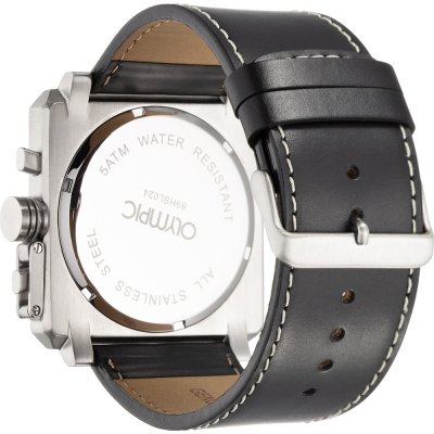 Dit Olympic horloge heeft een kast gemaakt van Staal zilver met een diameter van 46 mm en is voorzien van een leer band. In de kast bevindt zich een Miyota kwaliteitsuurwerk en is afgewerkt met Mineraalglas.