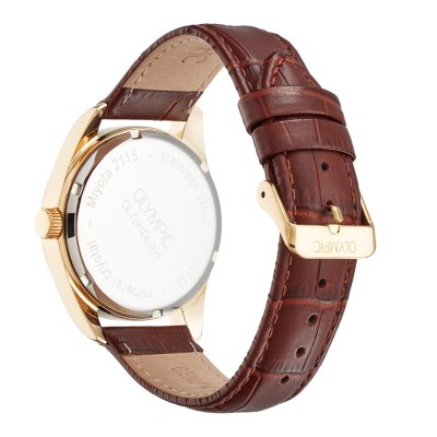 Dit Olympic horloge heeft een kast gemaakt van Staal zilver met een diameter van 39 mm en is voorzien van een leer band. In de kast bevindt zich een Miyota kwaliteitsuurwerk en is afgewerkt met Mineraalglas.