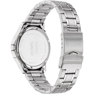 Dit Olympic horloge heeft een kast gemaakt van Staal zilver met een diameter van 39 mm en is voorzien van een Staal zilver band. In de kast bevindt zich een Miyota kwaliteitsuurwerk en is afgewerkt met Mineraalglas.