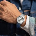 Dit Olympic horloge heeft een kast gemaakt van Staal zilver met een diameter van 44 mm en is voorzien van een Staal zilver band. In de kast bevindt zich een Miyota kwaliteitsuurwerk en is afgewerkt met Saffierglas.