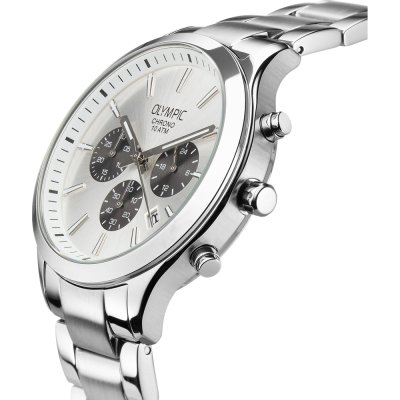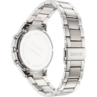 Dit Olympic horloge heeft een kast gemaakt van Staal zilver met een diameter van 42 mm en is voorzien van een Staal zilver band. In de kast bevindt zich een Miyota kwaliteitsuurwerk en is afgewerkt met Mineraalglas.