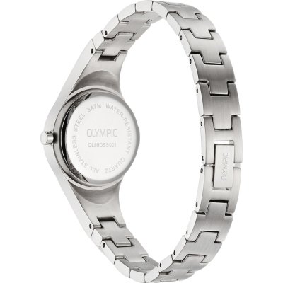 Dit Olympic horloge heeft een kast gemaakt van Staal zilver met een diameter van 26 mm en is voorzien van een Staal zilver band. In de kast bevindt zich een Seiko kwaliteitsuurwerk en is afgewerkt met Mineraalglas.