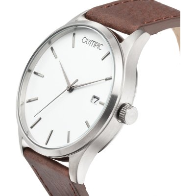 Dit Olympic horloge heeft een kast gemaakt van Staal zilver met een diameter van 45 mm en is voorzien van een leer band. In de kast bevindt zich een Miyota kwaliteitsuurwerk en is afgewerkt met Mineraalglas.