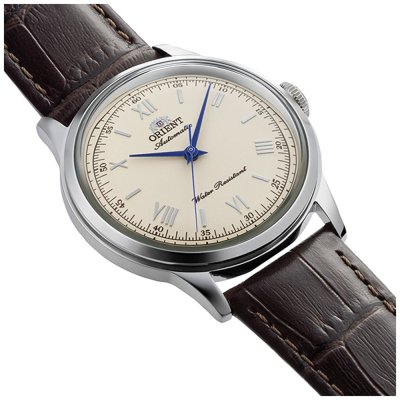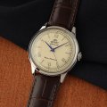 Dit Orient horloge heeft een kast gemaakt van Staal zilver met een diameter van 38 mm en is voorzien van een leer band. In de kast bevindt zich een Epson kwaliteitsuurwerk en is afgewerkt met Mineraalglas.