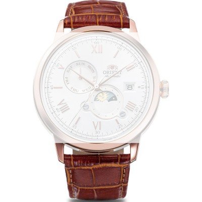 Dit Orient horlogebandje is gemaakt van leer en wordt aan het horloge bevestigd door middel van bandpennen. De band heeft een breedte van 21 mm en wordt gesloten door middel van een gesp. De band heeft een rechte aanzet wat betekent dat deze band geschikt is voor alle Orient horloges met een rechte aanzet.