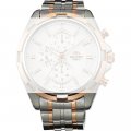 Dit Orient horlogebandje is gemaakt van roestvrij staal en wordt aan het horloge bevestigd door middel van bandpennen. De band heeft een breedte van 24 mm en wordt gesloten door middel van een vouwsluiting met drukknoppen. De band heeft geen rechte aanzet wat betekent dat deze band alleen geschikt is voor de horloges die hieronder worden vermeld.