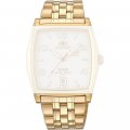 Dit Orient horlogebandje is gemaakt van roestvrij staal en wordt aan het horloge bevestigd door middel van bandpennen. De band heeft een breedte van 24 mm en wordt gesloten door middel van een vouwsluiting met drukknoppen. De band heeft geen rechte aanzet wat betekent dat deze band alleen geschikt is voor de horloges die hieronder worden vermeld.