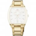 Dit Orient horlogebandje is gemaakt van roestvrij staal en wordt aan het horloge bevestigd door middel van bandpennen. De band heeft een breedte van 24 mm en wordt gesloten door middel van een vouwsluiting met drukknoppen. De band heeft geen rechte aanzet wat betekent dat deze band alleen geschikt is voor de horloges die hieronder worden vermeld.