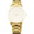 Dit Orient horlogebandje is gemaakt van roestvrij staal en wordt aan het horloge bevestigd door middel van bandpennen. De band heeft een breedte van 16 mm en wordt gesloten door middel van een vouwsluiting met drukknoppen. De band heeft geen rechte aanzet wat betekent dat deze band alleen geschikt is voor de horloges die hieronder worden vermeld.